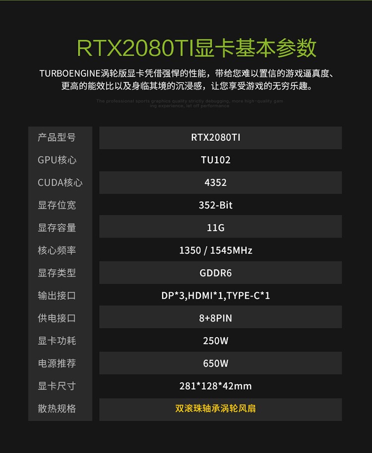NVIDIA GeForce RTX 2080Ti 定制版 (万丽定制版) 技术参数...