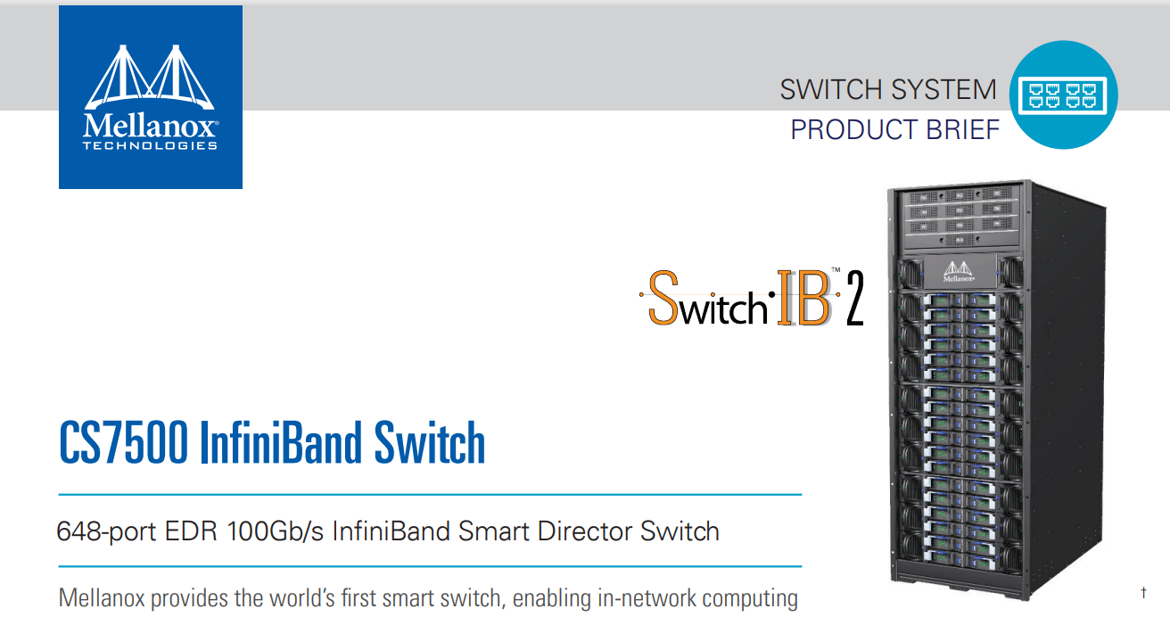 NVIDIA 网络 MCS7500 提供世界上第一个智能交换机,通过共同设计可扩展的分层聚合和减少协议 (SHARP) 技术实现网络内计算。CS7500 系统通过提供 130Tb/s 的全双向带宽和 400n 端口延迟,提供 28U 外形系数中性能最高的织物解决方案。