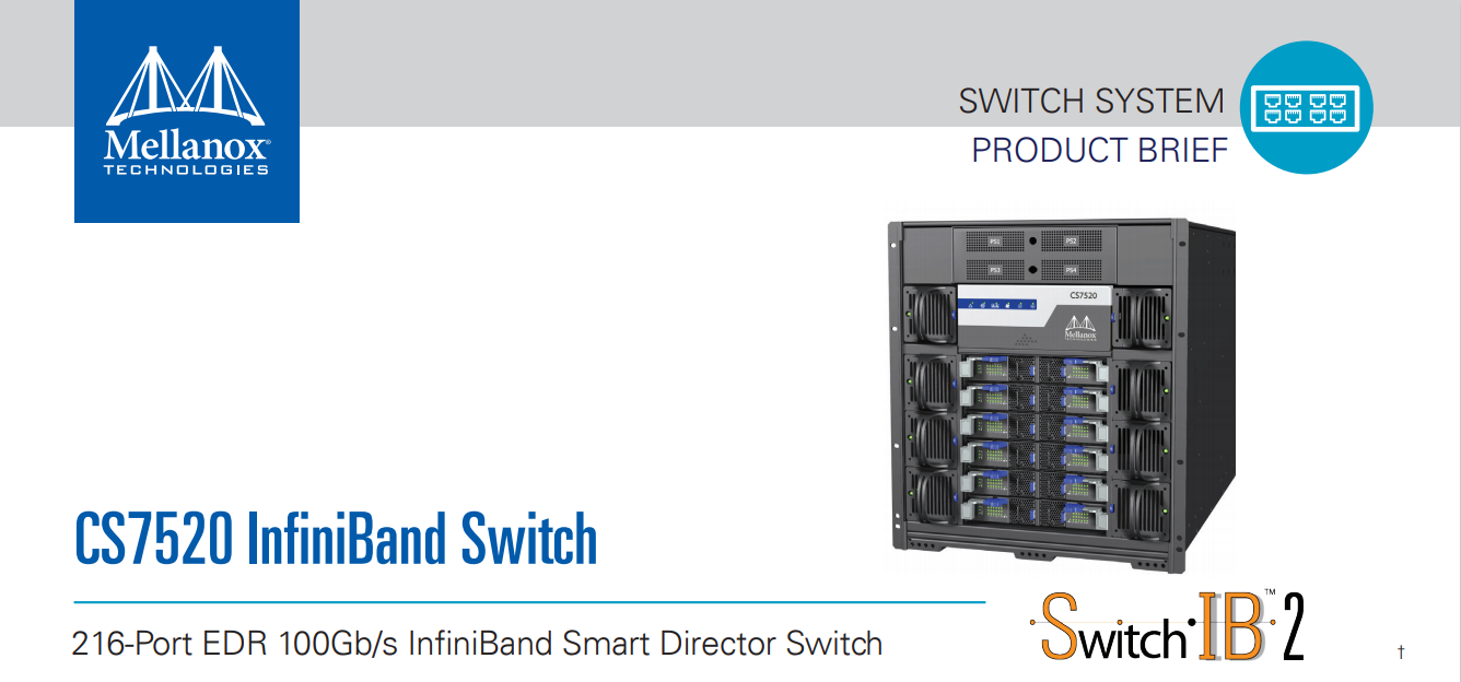 648 端口 EDR 100Gb/s 因菲尼班德智能总监开关 NVIDIA 网络 MCS7520 提供世界上第一个智能交换机,通过共同设计可扩展的分层聚合和减少协议 (SHARP) 技术实现网络内计算。CS7500 系统通过提...