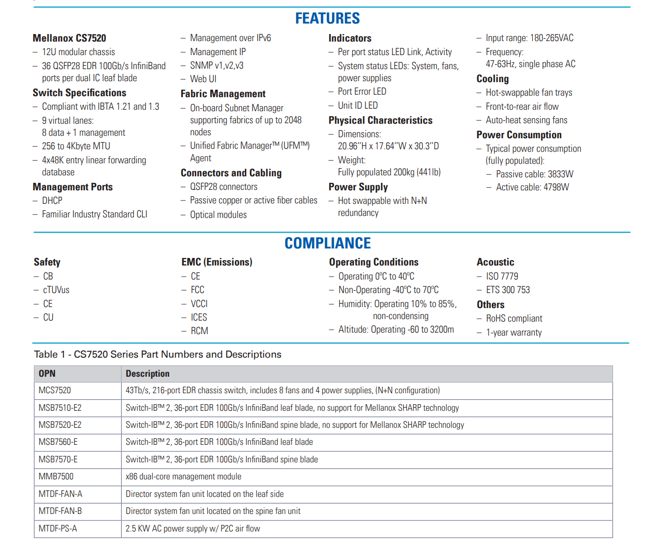 NVIDIA 网络 MCS7520 提供世界上第一个智能交换机,通过共同设计可扩展的分层聚合和减少协议 (SHARP) 技术实现网络内计算。CS7500 系统通过提供 130Tb/s 的全双向带宽和 400n 端口延迟,提供 28U 外形系数中性能最高的织物解决方案。