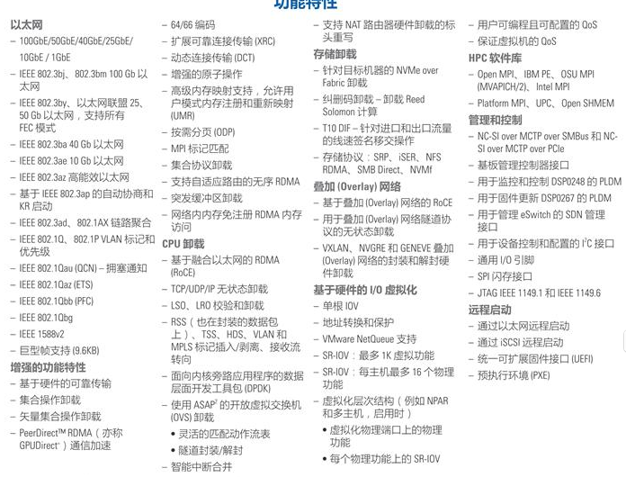 - 先进的存储功能,包括NVMe over Fabric卸载