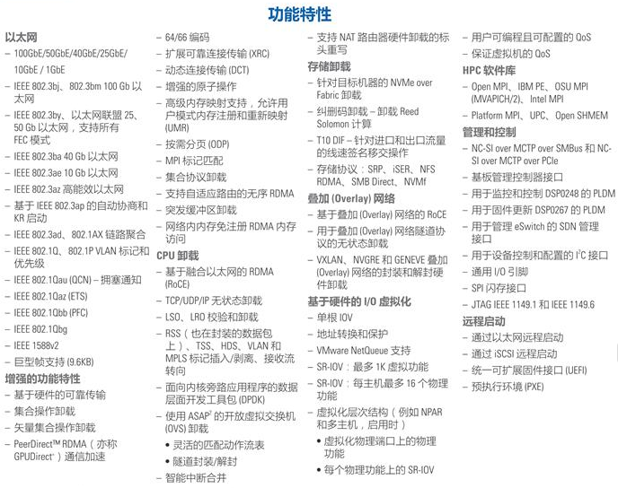 • 先进的存储功能,包括NVMe over Fabric卸载