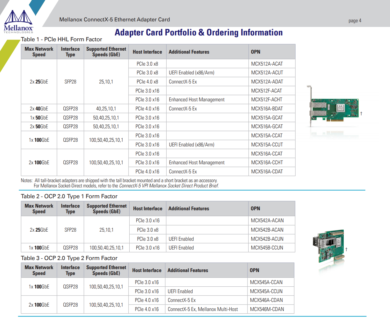 ConnectX-5 适配器卡适用于 PCIe Gen 3.0 和第 4.0 代服务器,并在立式 PCIE 卡、OCP 2.0 和 OCP 3.0 外形因子中支持 1、10、25、40、50 和 100 GbE 速度。ConnectX-5 卡还提供先进的多主机和插座直接技术。